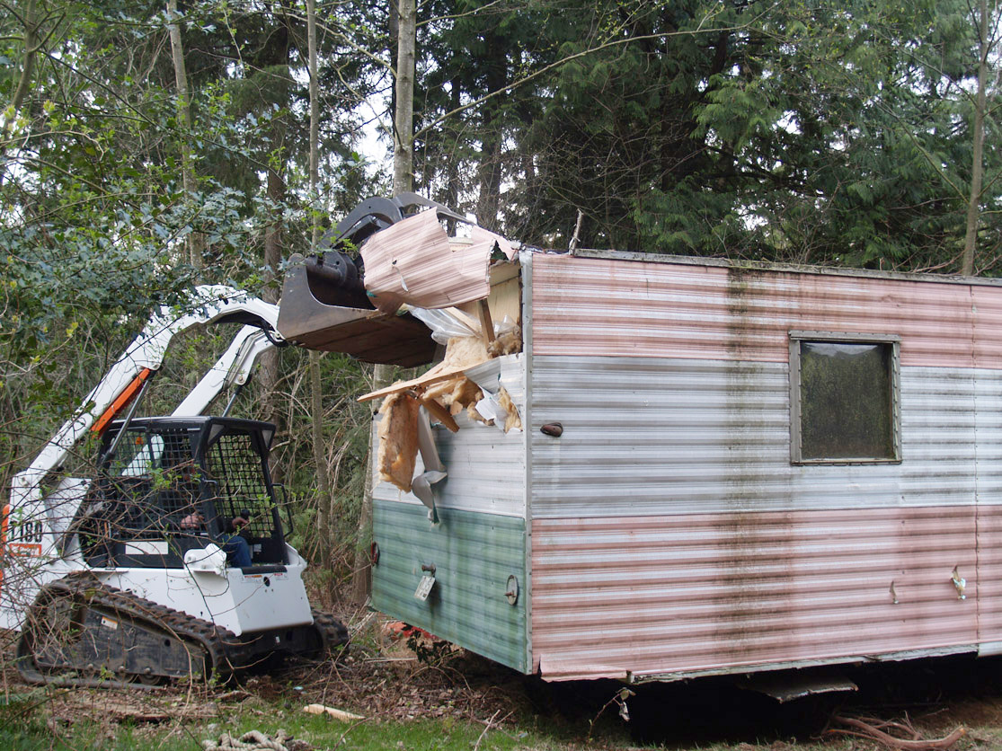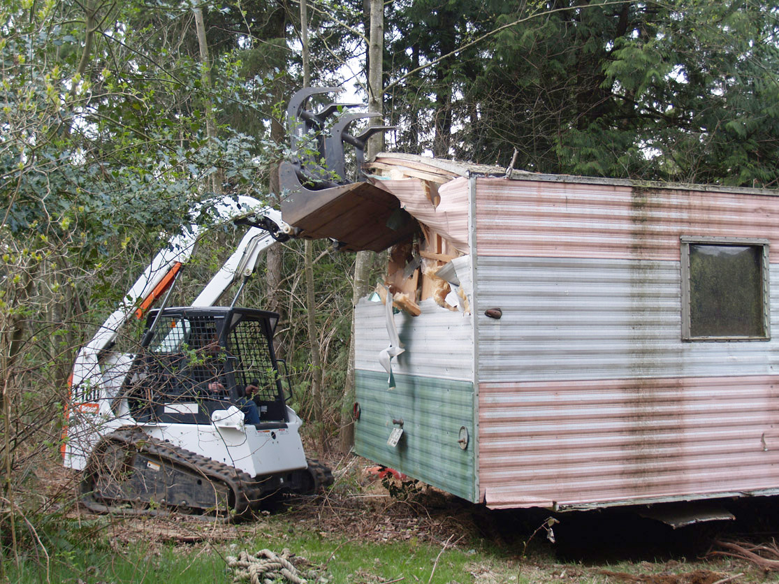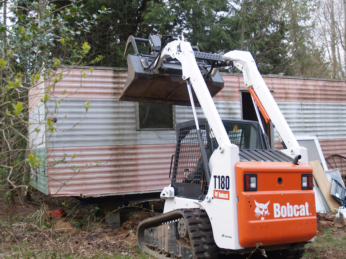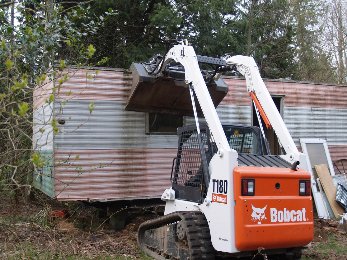Using a grapple style bucket, we can manipulate, disassemble, and dispose of unwanted items that could be manually difficult to deal with.