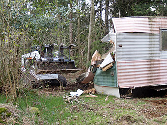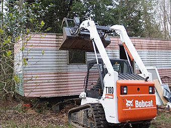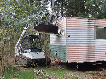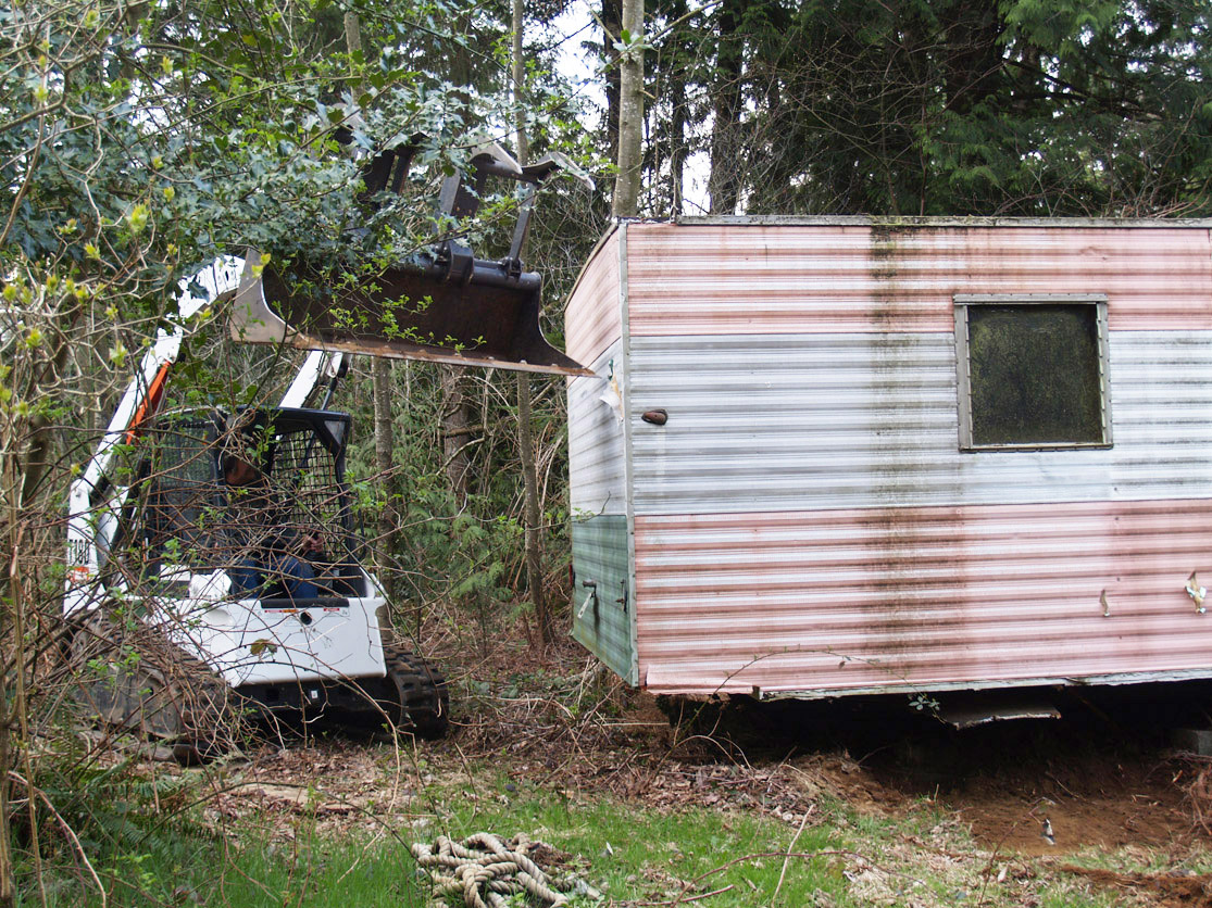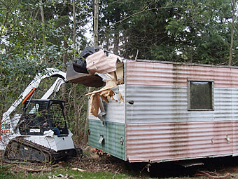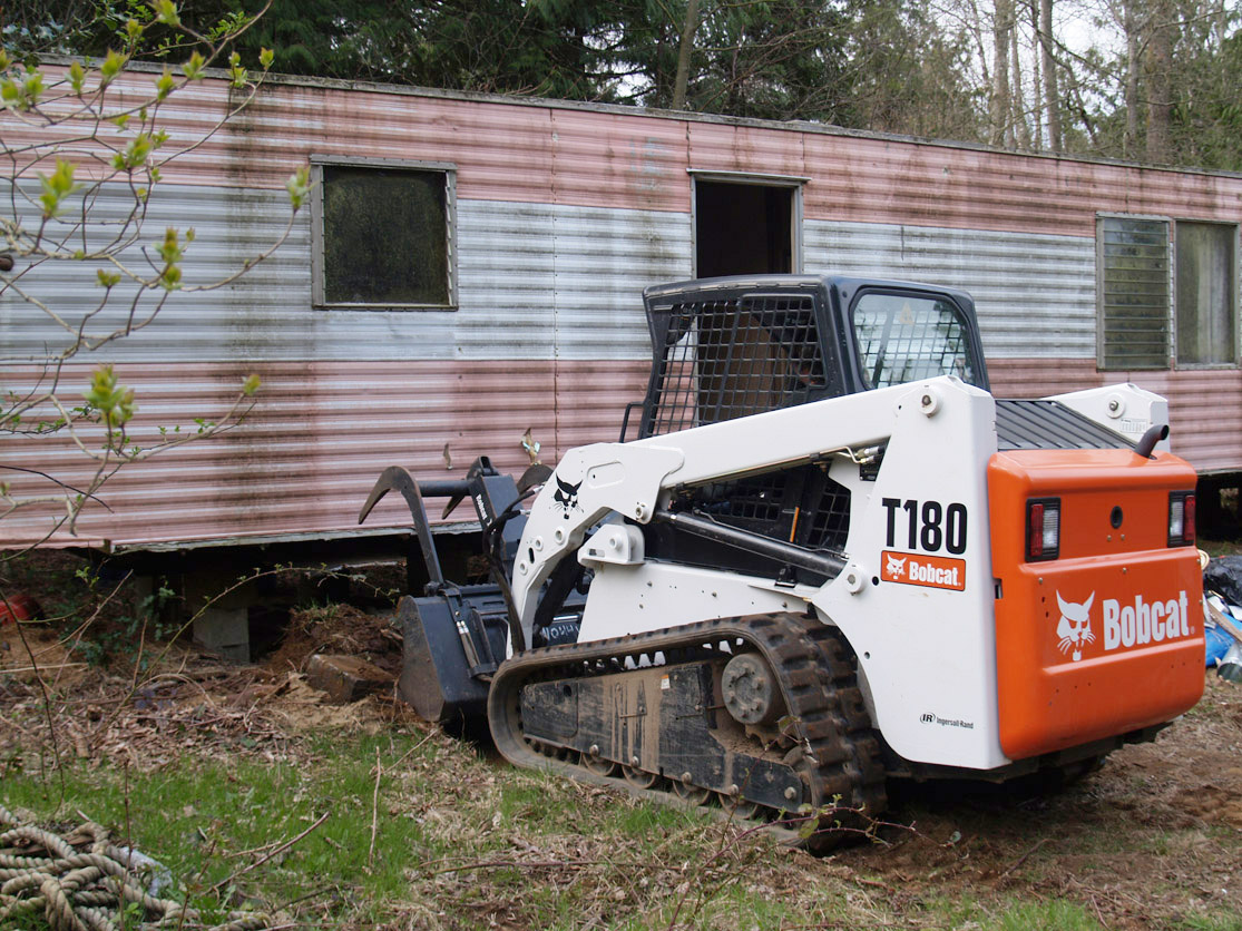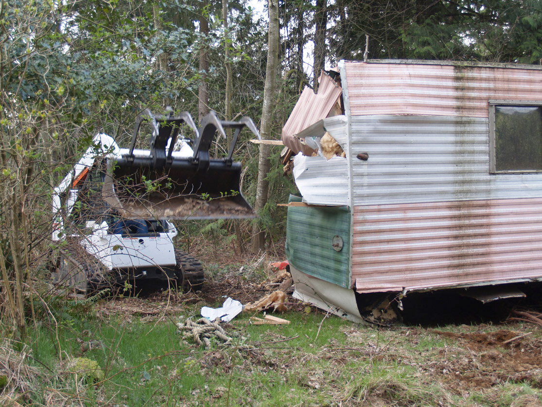 Using a grapple style bucket, we can manipulate, disassemble, and dispose of unwanted items that could be manually difficult to deal with.